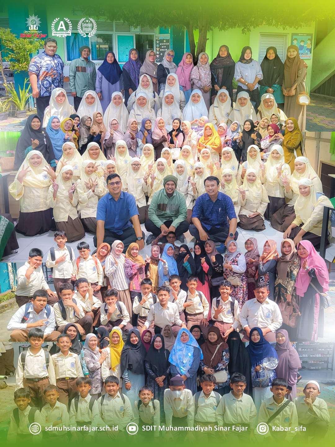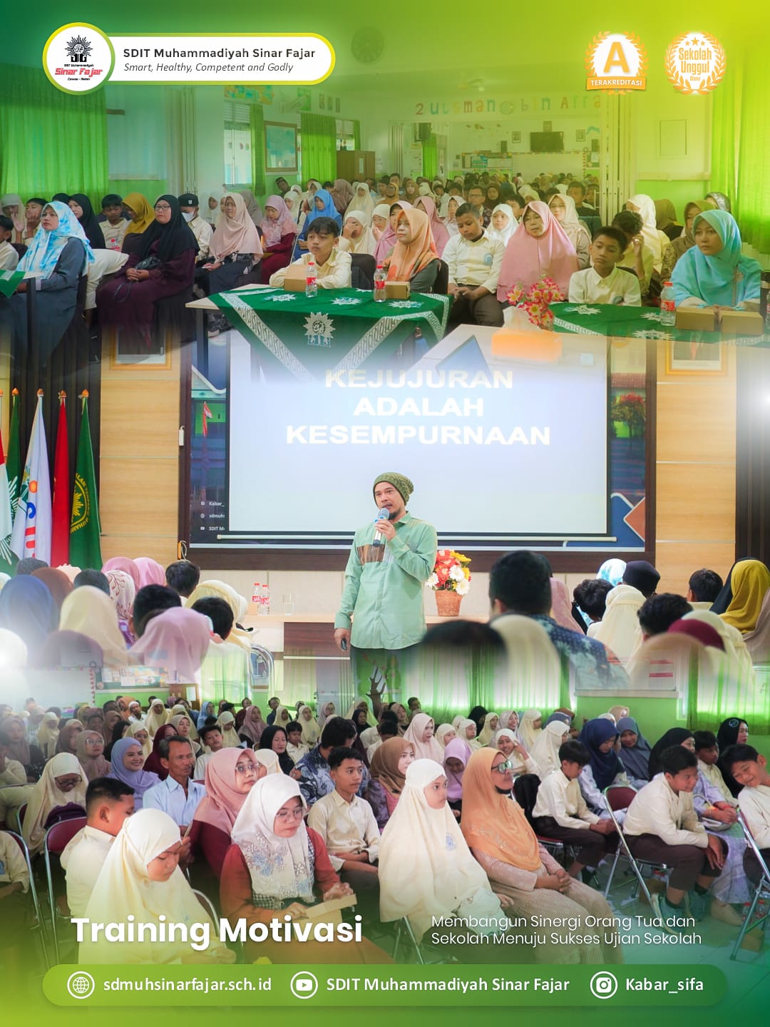Sabtu, 11 April 2026 SDIT Muhammadiyah Sinar Fajar menyelenggarakan kegiatan Training Motivasi kelas VI dengan mengusung tema “Membangun sinergi orang tua dan sekolah menuju sukses ujian sekolah”. Kegiatan ini bertempat di Aula Kampus 1 SDIT Muhammadiyah Sinar Fajar. Training Motivasi ini menjadi momentum membangun kebersamaan antara santri dan wali santri kelas VI dengan sekolah dalam menyiapkan santri menghadapi ujian sekolah.